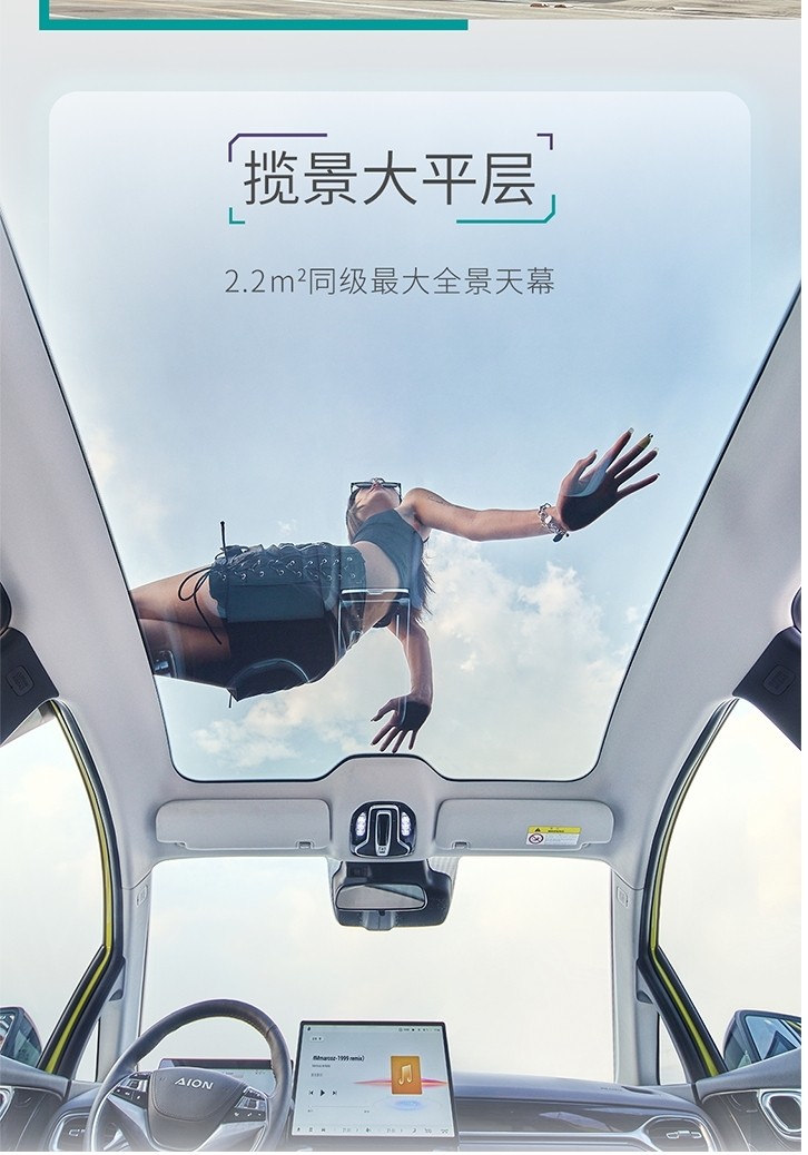 另外,AION V Plus的全景天窗升级成了全景天幕,其尺寸达到了2.2平方米,几乎占据了整个车顶,为乘客带来了极佳的赏景体验。如果你开着AION V Plus郊游,晚上躺在拼接成“大床”的座椅上,打开遮阳帘之后,你就将漫天星河尽收眼底,这就是新车带来的出行惬意感。