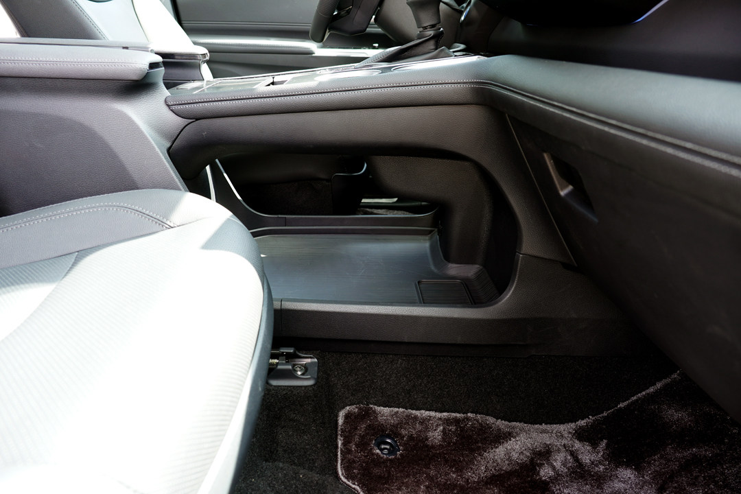 在挡把下方还有一个容积可观的开放式储物格,可以将安放一些女士的手提包包,或者一些容易倾倒且洒出的物品。