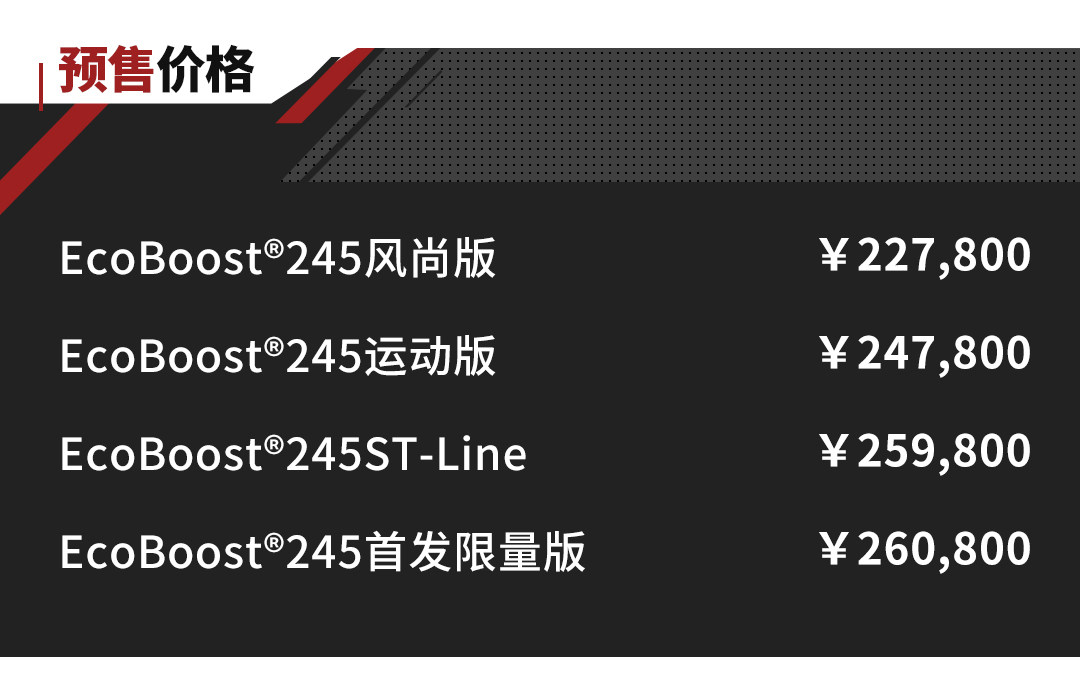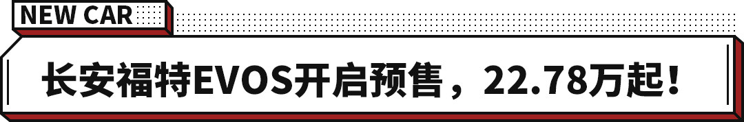 9月26日,长安福特EVOS开启预售,其预售价为22.78-26.08万元,目前提供了四款配置车型。