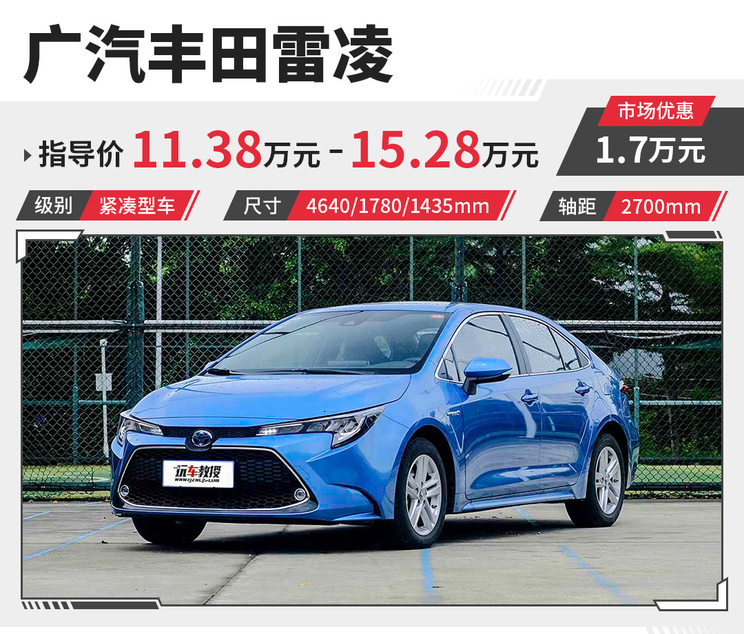 丰田雷凌尺寸:4640*1780*1435(mm)轴距2700mm