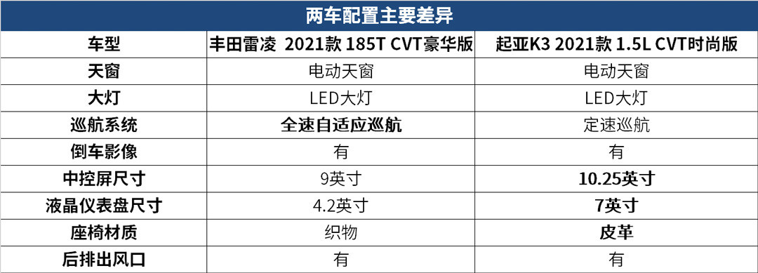 通过对比不难发现,起亚K3和丰田雷凌均为很实用的紧凑型轿车,其中K3在配置、乘坐方面的表现更加出色,很适合追求舒适性体验的用户,而雷凌则是更适合讲究实用性的消费者。当然了,价格也是关键,其中起亚K3目前优惠后最低11万左右就能落地,而雷凌则要去到12万出头,总的来说,前者会更值得购买。