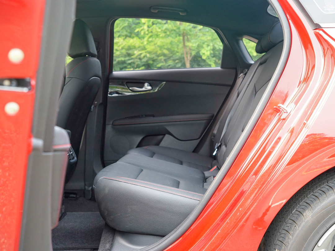 经过身高180 cm的教授实测,落座起亚K3后排时的腿部空间余量在1拳左右,座椅的乘坐感受也较为舒适,加上中间地台隆起不高,并提供了空调出风口和后排扶手,长时间乘坐也较为舒适。