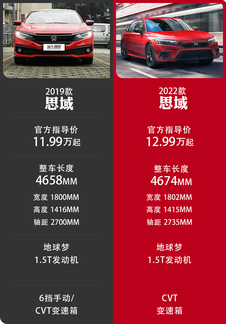 不过值得注意的是,第十一代思域的传动系统告别了手动挡,全系只保留下了CVT变速箱,对于喜欢性能的车迷多少有些遗憾。而这次教授就拿这两者中最多用户关注、购买的高功率车型进行对比,重要的是新、老款的高功率CVT版本同样均为4款车型。