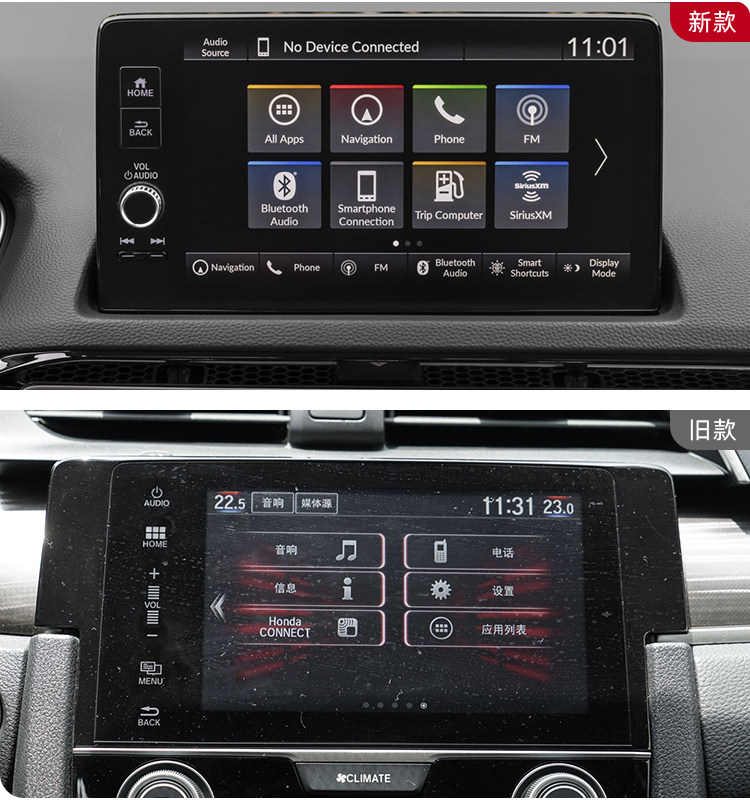 相信第十代思域上最让人头痛莫过于车机系统,无论是反应速度或是画质流畅度都较为卡顿,而第十一代思域搭载的Honda CONNECT 3.0智导互联系统就解决了反应卡顿等问题,且内置了车联网以及app安装等功能,提升了人机交互体验。