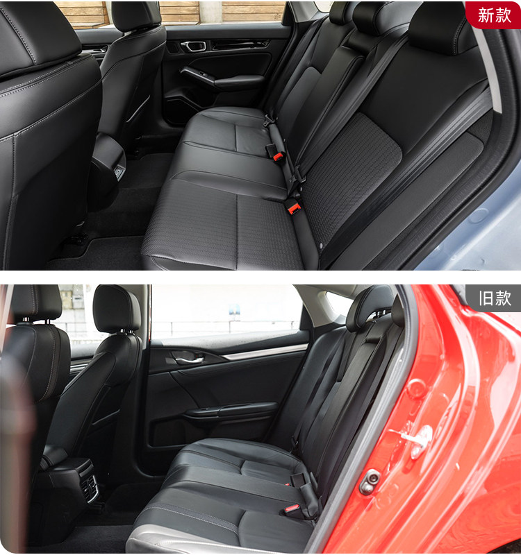 作为换代车型第十一代思域在车身长度和轴距上尺寸也有明显的变化,这也对车内空间有了一定的改善,乘坐上的表现拥有更为舒展的纵向空间。另外,前后排座椅增加了皮+翻毛面料,在用料上也相比第十代思域更加细腻,自然老款车型舒适性方面也会稍显逊色。