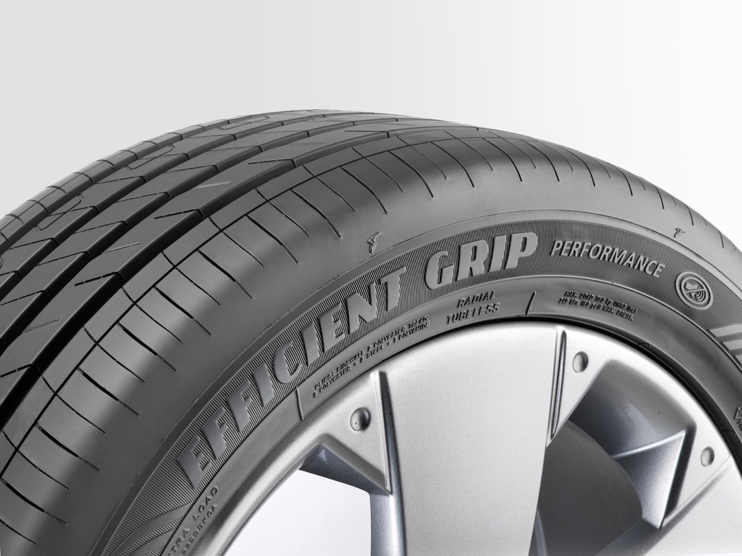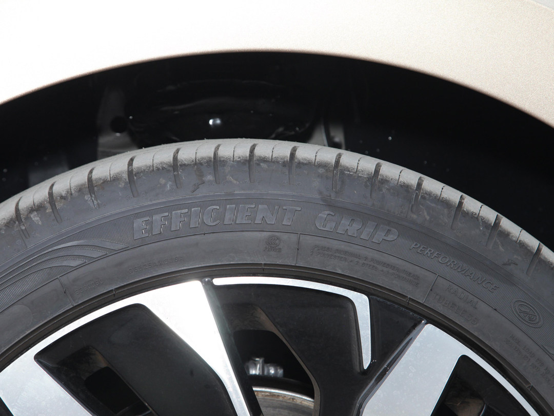 帕萨特使用的是固特异EFFICIENTGRIP PERFORMANCE 御乘II代,从轮胎的侧面的logo就能看出这款轮胎的针对静音而设计,其独有的静音胎面设计,能够有效减少空气流动,降低胎噪。是帕萨特能实现低路噪、高NVH表现的重要功臣。