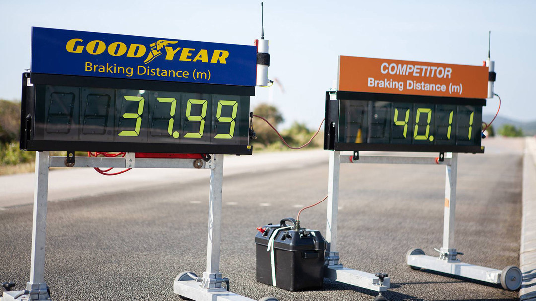 作为参考,固特异曾使用高硅配方的鹰驰F1 ASYMMETRIC SUV轮胎与竞品对比,结果得出高硅配方的鹰驰F1 ASYMMETRIC SUV比竞品轮胎湿地刹车距离缩短2.7米,要知道一辆车的长度约5米,2.7米相当于半辆车的长度,而在能见度较低且路面湿滑的状态下,2.7米的差距就关乎到事故与否了。