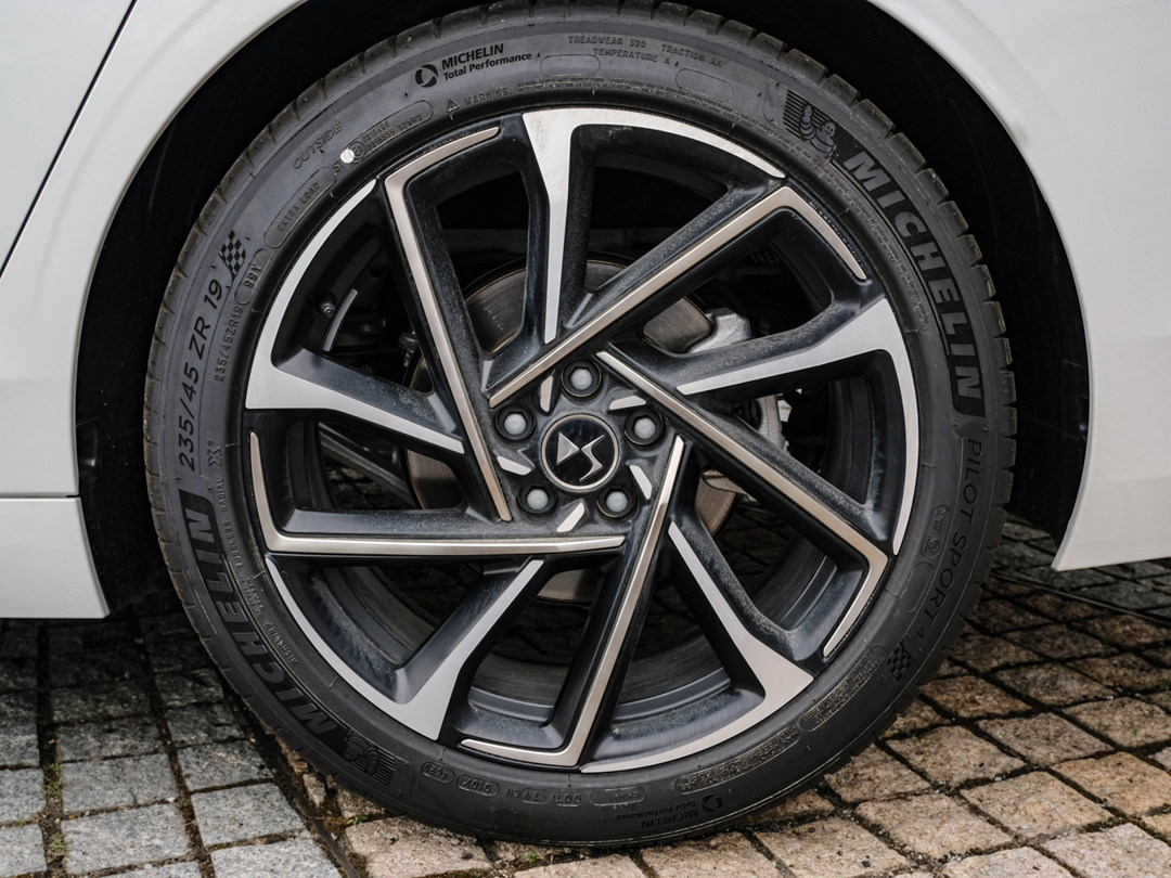 DS 9的入门车型使用米其林PRIMACY 4轮胎,而中高配车型则使用更运动的Pilot Sport 4轮胎,其中PRIMACY 4追求综合性能,企图想用木桶原理去征服消费者,而PS4轮胎则明显侧重于运动性能,静音能力并不是其优势。