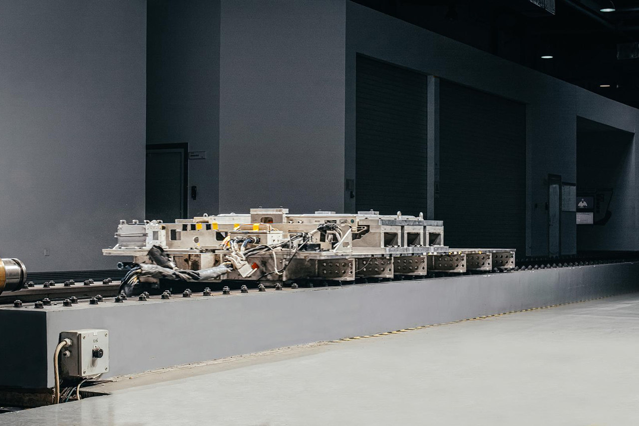 这一项测试也是模拟碰撞,在车辆碰撞时瞬间会带来很大的加速度,采用的设备是来自三菱重工的MHI加速台车,一般是用来测试整车或者其他零部件,岚图用它来测试电池。准备时间较长,但发力就一瞬间,可以给予电池组50g/60ms的加速度,国标对此项测试的要求是28g/60ms。测试过后电池组外部完整,没有任何异样,电池组内的各项指标也在标准范围内,顺利通过测试。