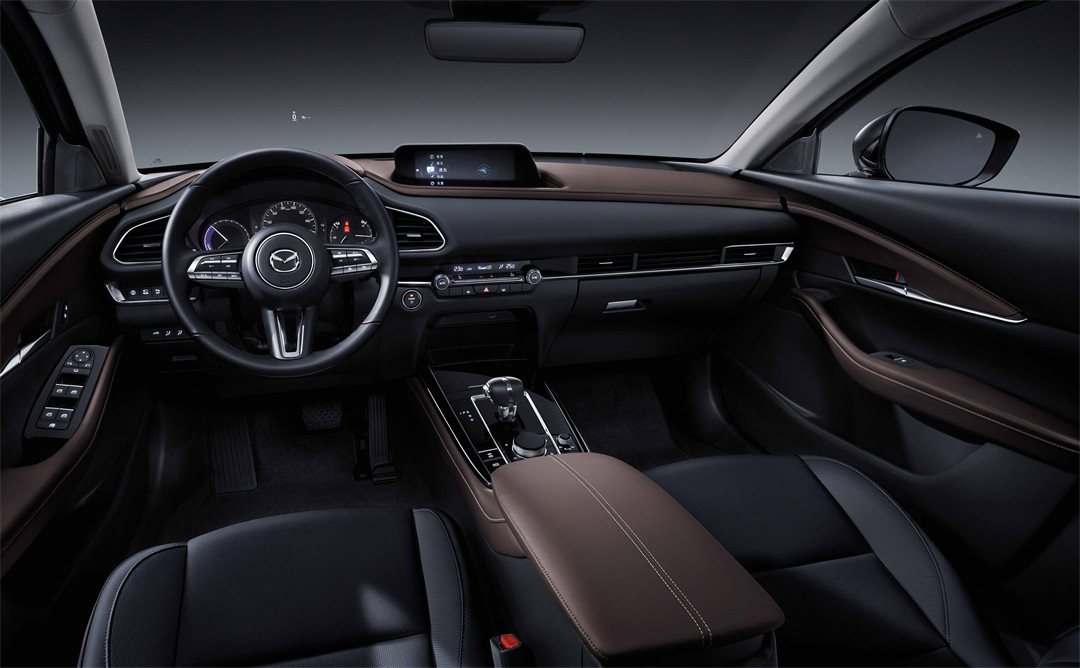 内饰方面,马自达CX-30 EV整体布局和纯燃油版的依旧保持高度一致,依旧推崇极简的设计理念,无论是方向盘或者是仪表台都是做得那么的纤细,使得整个内饰显得更加的精致。