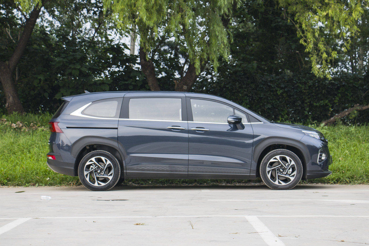 车身侧面,可以看得出库斯途整体造型较为传统,但由于车身双腰线设计的加入,库斯途仍然符合当代汽车时尚的审美观,双侧滑门设计让乘客上下车无疑更加轻松。另外,该车搭配了双色轮圈,确实将整个运动氛围提升几个档次。
