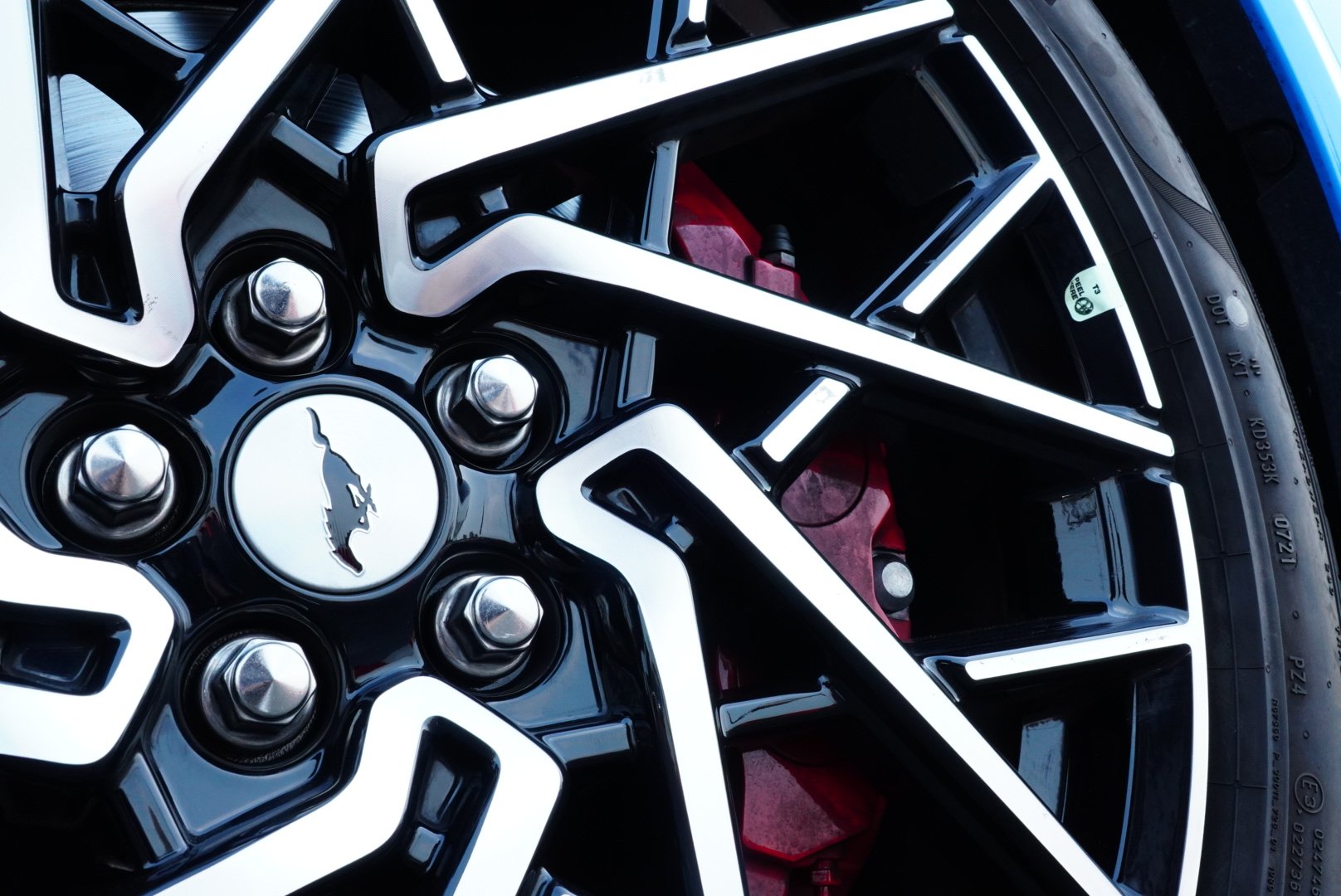 车身侧面的顶部快背曲线的“溜背”致敬美系经典跑车造型的同时营造出动感流线的设计比例。而倍耐力P Zero轮胎里隐隐露出的“那一抹红”正是Brembo 全铝四活塞卡钳。就算静静停在那,你也知道这匹马可不是什么好惹的货。