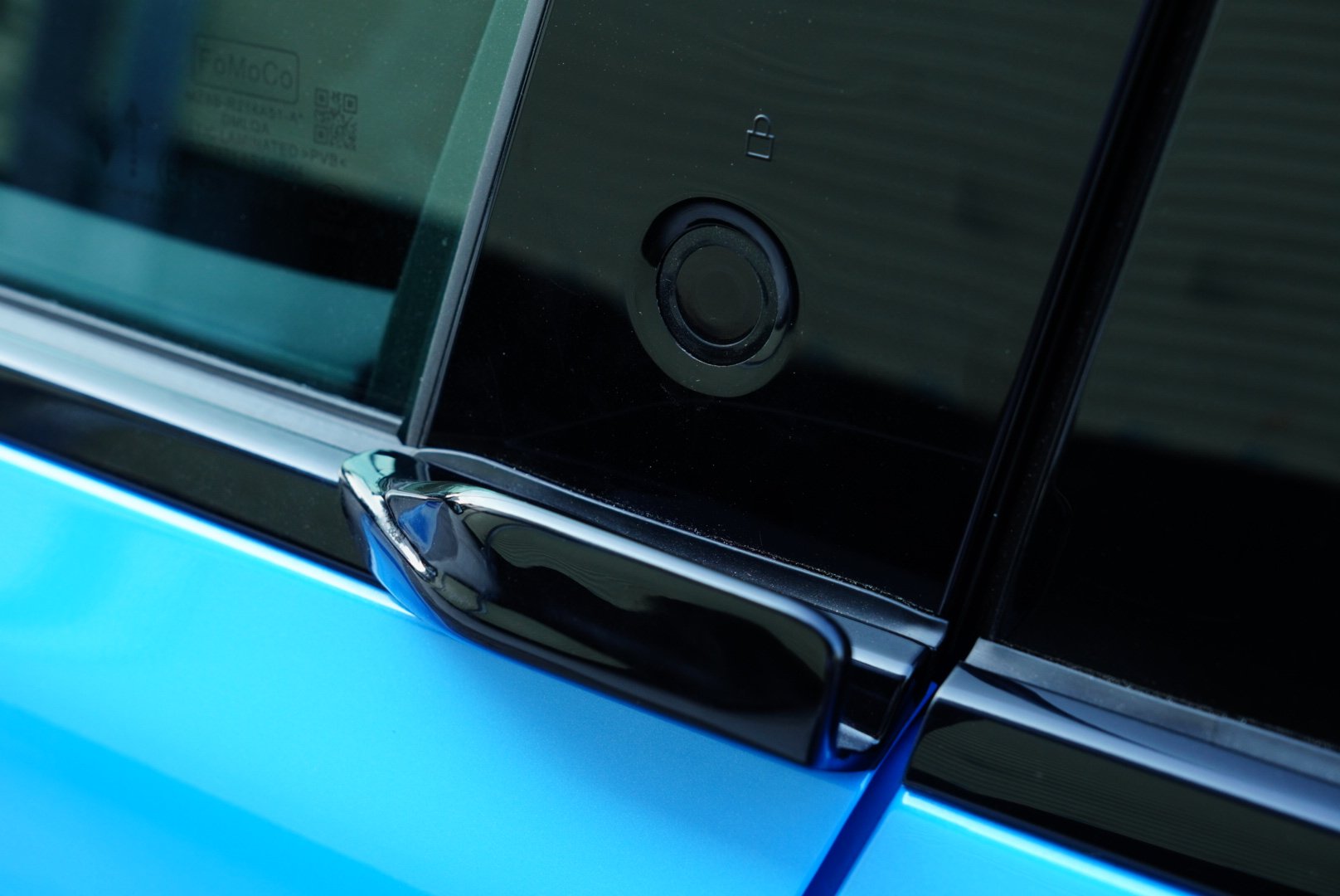侧面最喜欢的还是这个独有的开门方式,福特Mustang Mach-E的无外把手E-Latch电子门锁设计十分新潮,车内的门把拉手同样有区别与市面上的主流设计。