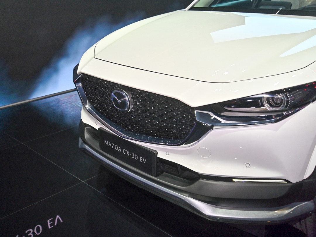 CX-30 EV在外观设计上,与燃油版基本一致,车辆整体被加高,为了减少车辆加高后的突兀感,厂家还专门为CX-30 EV增加了一层包围以及轮眉,以显示与燃油版车型的不同。