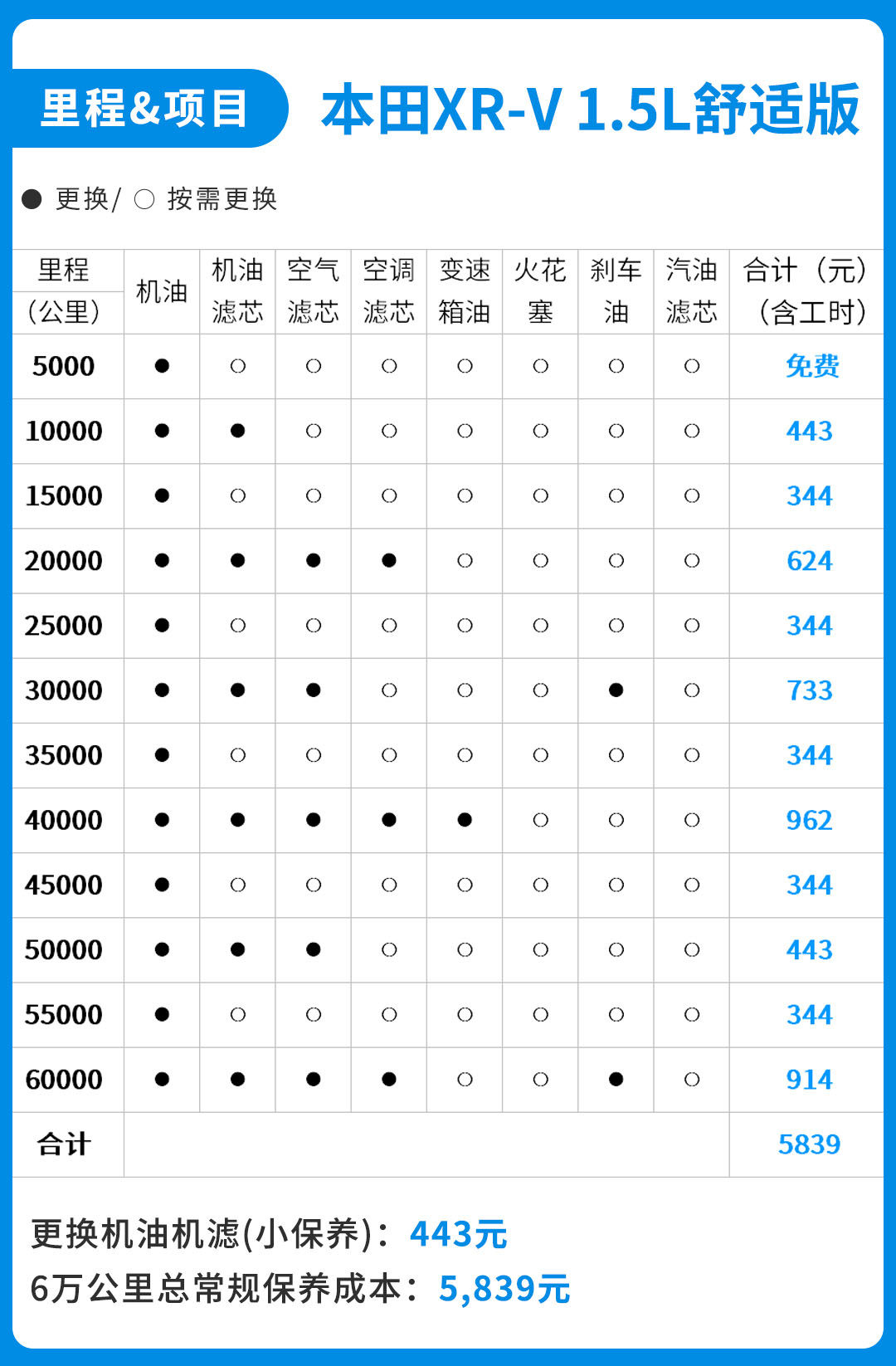 我们以目前畅销的本田XR-V 1.5L舒适版为例,看看这款热门小型SUV的养车费用到底贵不贵?