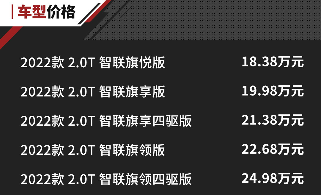 新款车型定价依旧维持在18-25万元之间,正面迎击合资SUV车型,很多人觉得20万元买国产车难以接受,但如果真正将红旗HS5和合资SUV对比时,你会发现红旗HS5依旧给你更高的性价比。
