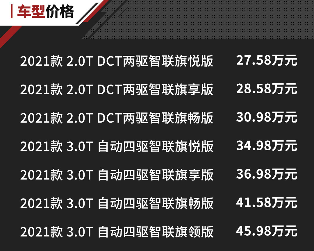 这两款动力系统在性能上完全不需要担心,即使是2.0T也有足够的动力储备。而3.0T V6机械增压的车型,更是我们目前能买到最便宜的搭载3.0T的车型。试问如果是放在合资或者豪华品牌,这样的动力配置会卖多少钱呢?