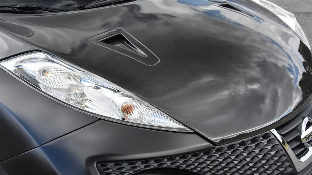 这不,首要的第一件事情就是要车架进行补强处理。其次,在外观方面则换上了碳纤维的前后包围,机盖也换成了碳纤维材质,以减轻整车的重量。