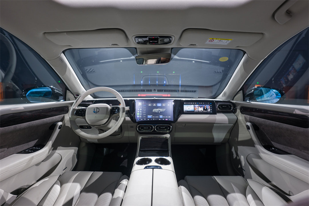 车内的科技氛围进到车舱的那一刻,你绝对会感觉到十分震撼,10.25英寸仪表盘+12.8英寸中控屏+10.25英寸副驾驶多媒体显示屏,三块大尺寸屏幕分别负责了各自该有的功能。同时,还配备了人脸ID启动功能,当摄像头识别人脸ID后,会自动调整好预设的后视镜、座椅以及驾驶模式习惯等,带来了更加智能的科技体验感觉。