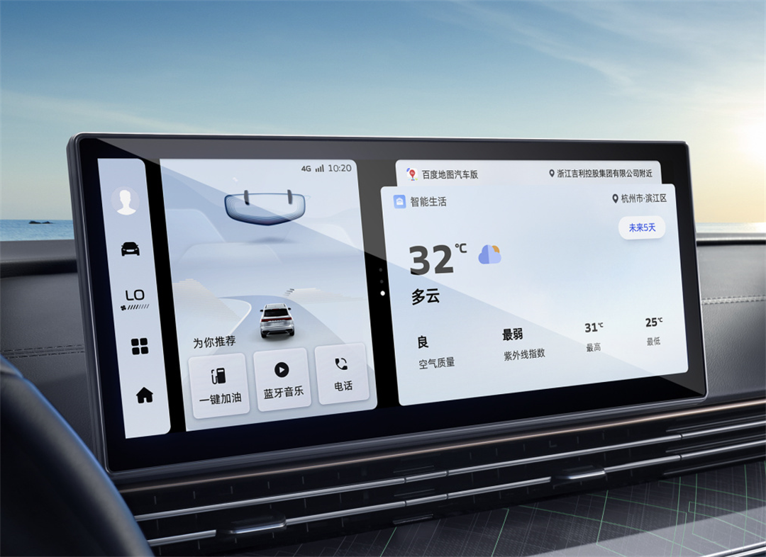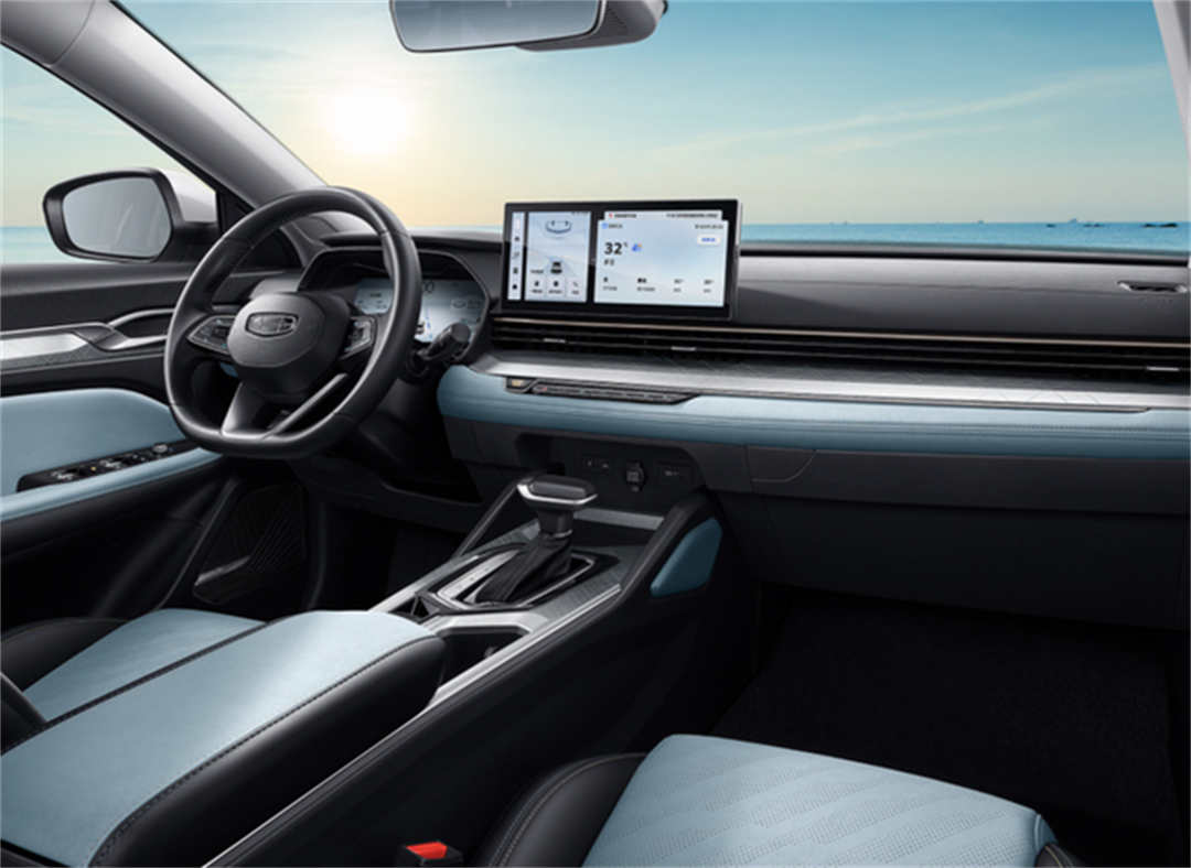 来到车内,吉利帝豪L在内饰设计融入了中国元素,大尺寸的高清悬浮中控大屏和大尺寸的全液晶仪表双大屏相互组合,确实为该车增加了不少科技感。