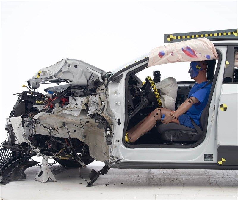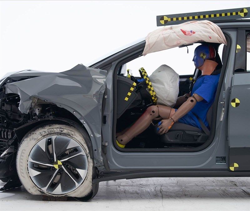 同样地,在车身侧面碰撞测试当中,车侧的形变量并不大,大体结构保持完整,安全气囊也能够正常开启,得益于侧气囊的保护,使得乘员的头部能够在受到侧向碰撞时,避免与坚固的结构发生直接撞击,得到了有效的保护。