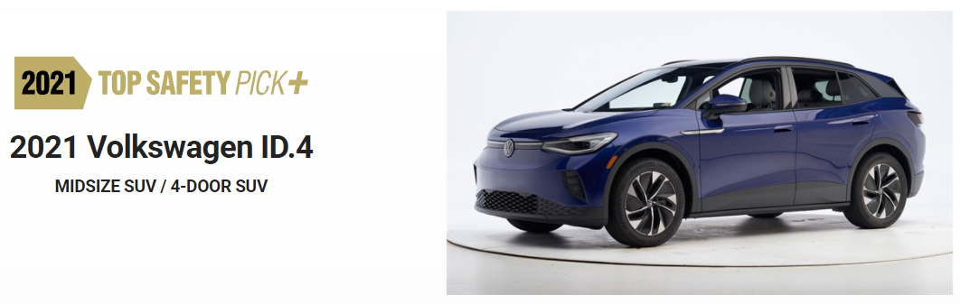 近日,IIHS公布了关于大众ID.4的碰撞测试成绩,大众ID.4以“全优生”的姿态荣获了TOP SAFETY PICK+的优异成绩。值得一提的是,大众ID.4是目前(2021年)大众品牌当中唯一一款车型是获得TOP SAFETY PICK+成绩的车型,这对于大众品牌来说无疑是个良好的开端。