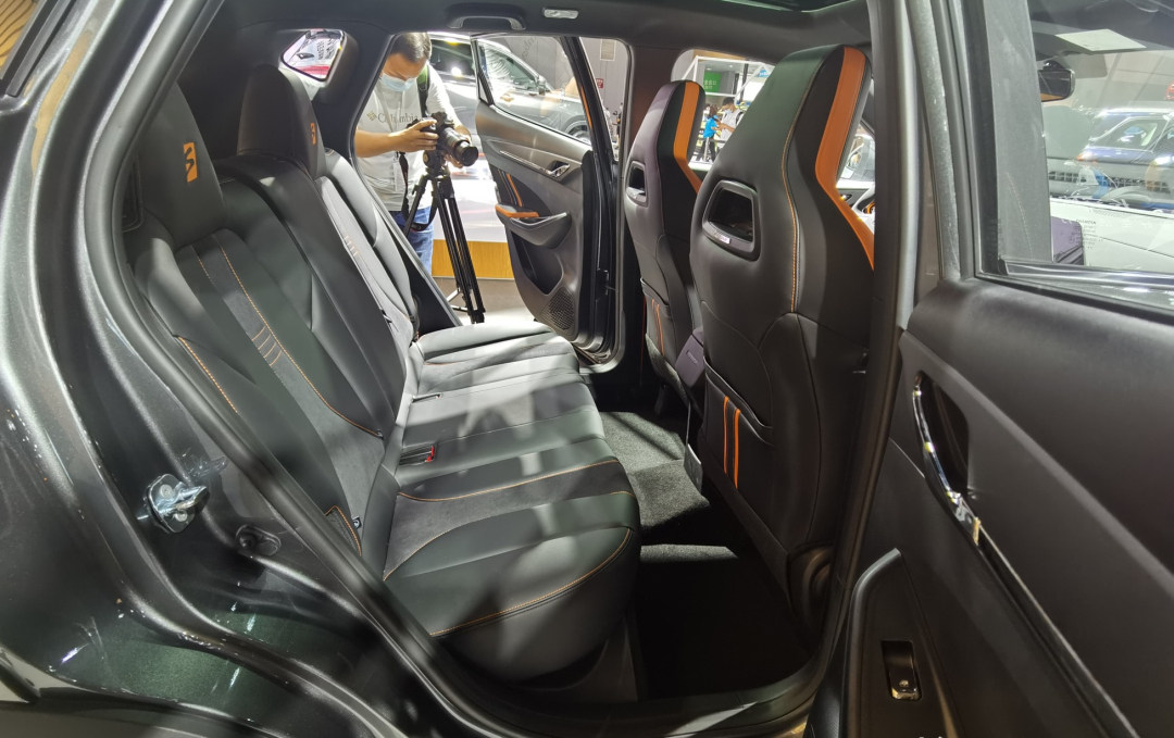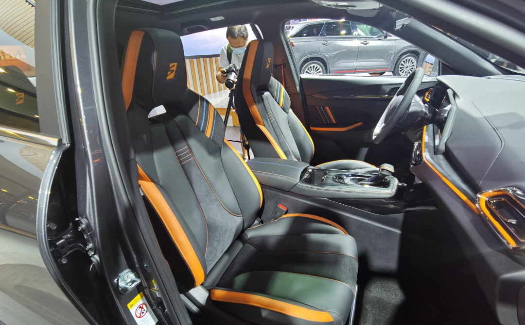 内饰方面,新车延续了普通版车型布局设计,配备10.25英寸悬浮式触控屏幕、7英寸的液晶仪表、游艇式挡把以及三幅式多功能方向盘。比较遗憾的是,新车内饰并没有采用红黑双拼的搭配,而是在黑色内饰座舱基础上,针对座椅、车门内衬、方向盘等处增加橙色装饰,与车外的装饰细节相呼应,呈现出极具竞技感的视觉效果。