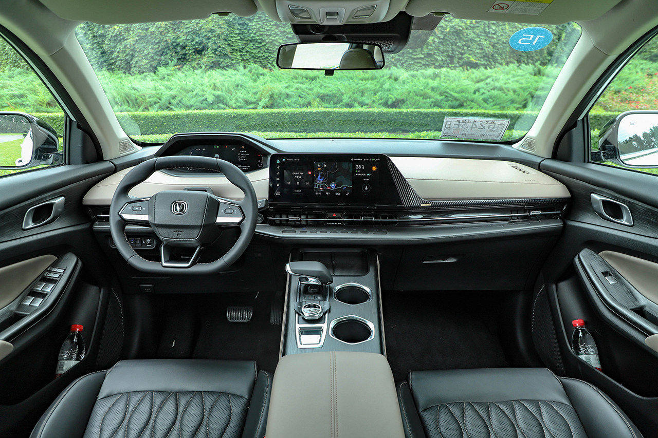 长安CS55 PLUS在设计语言上延续长安UNI序列的家族设计带来科技质感的驾乘氛围同时。另外,皮质用料包裹、座椅电动调节、自动空调得到了标配。辅以内饰氛围灯、Pionner先锋音响、面部识别、手势控制等讲究智能化和舒适性的功能也使得长安CS55 PLUS的驾乘质感提升不少档次。