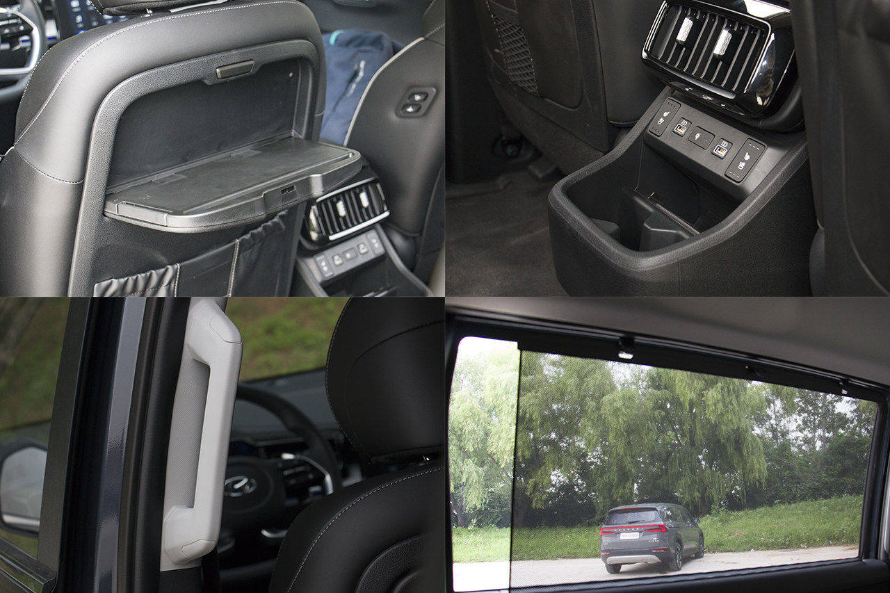 由于航空座椅的存在,导致第三排的空间也受到了压缩,在第二排保持相对良好的腿部空间时,第三排勉强能获得1拳的腿部空间,而且第三排座椅座垫较短,离地板高度也仅有300mm,无法为腿部提供充分的承托,因此在长时间乘坐时还是比较容易导致疲劳。
