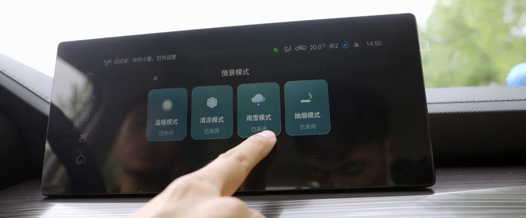 值得一提的是,车主可以通过切换不同场景,来实现更智能化用车的效果。例如,遇到雨雪或者内外温差较大的情况时,可以切换至雨雪模式,车辆会自动打开车窗加热,雨刮也会自动开启。