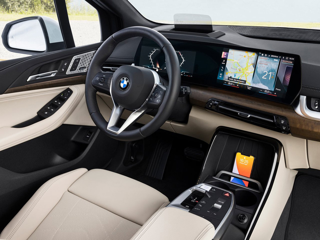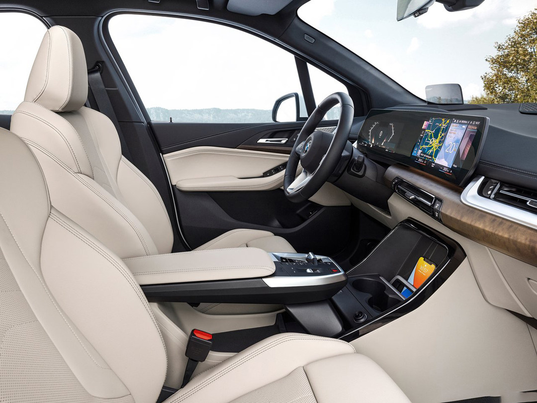 内装部分是宝马2系Active Tourer变化较为明显之处。首先人机交互界面得到了全面升级,如今2系Active Tourer使用上了宝马最新iDrive 8操作系统,整体科技感以及氛围感比老内饰提升不止一个档次,10.25英寸的液晶仪表和10.7英寸的触控屏配合上抬头显示,形成三屏互动。