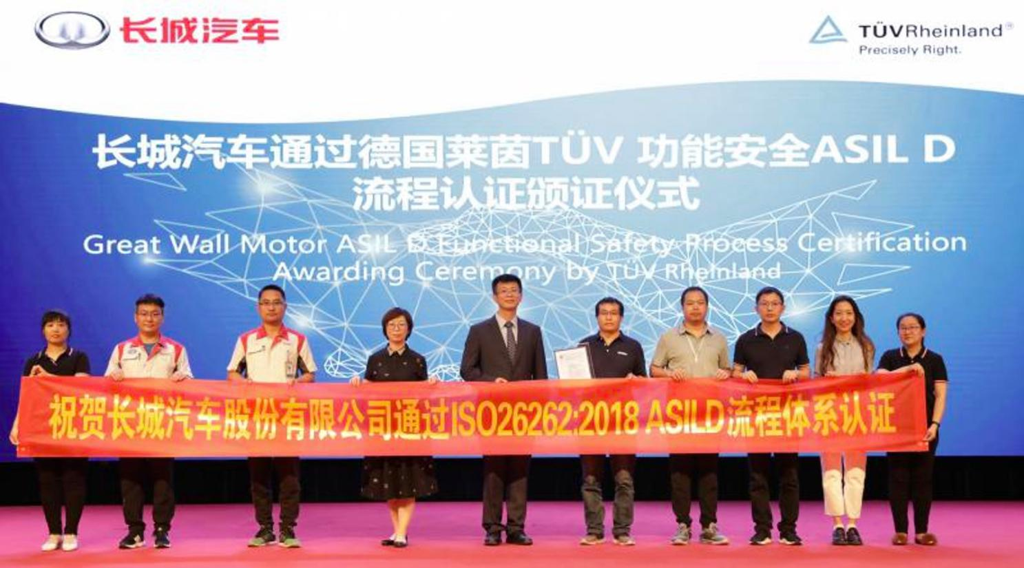 长城汽车通过德国莱恩TÜV功能安全ASIL D流程认证