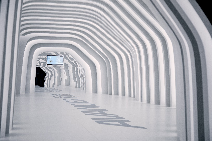 “纵享新适界”的第一空间,采用隧道式布局,以沉稳大气的白色作为主基调,奠定出整体空间的简雅特性。隧道入口的形状呼应了冠道(AVANCIER)的车门设计,进入隧道就像进入了简单又舒适的私人专属空间,而这种感官的改变正是冠道(AVANCIER)另一种生活哲学的开启。