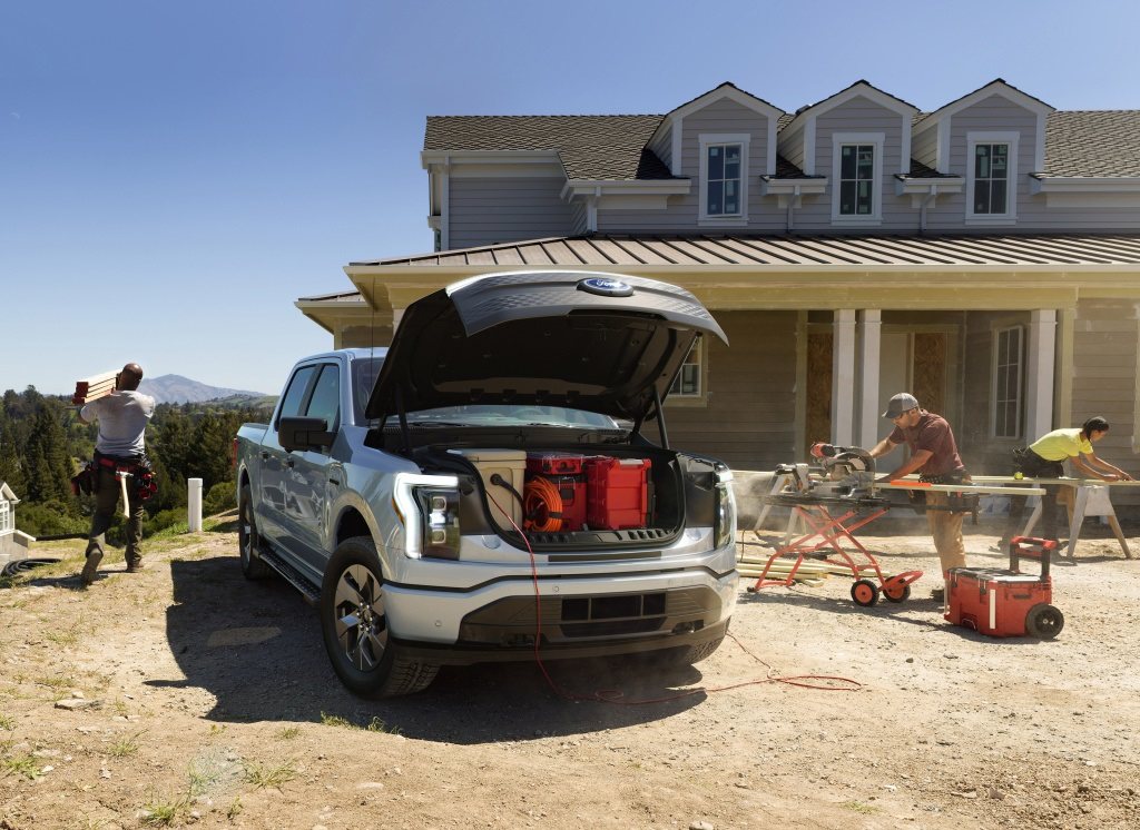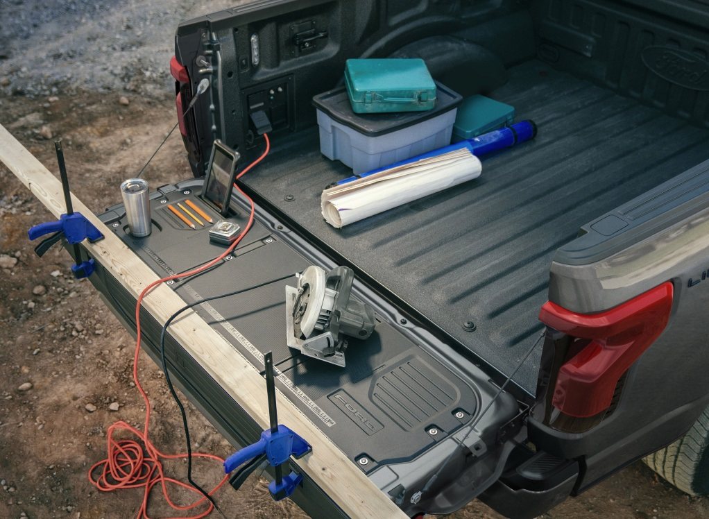 此外,得益于前机舱没有发动机,福特F-150 Lightning还拥有巨大的前备箱,容积达到了400L,实用性得到了进一步提升,应付日常使用绝对是绰绰有余的。同时,在特殊情况下之下,整车还可以变身为一个“移动电源”,可以对家用电器供电,就算野外露营也能满足。