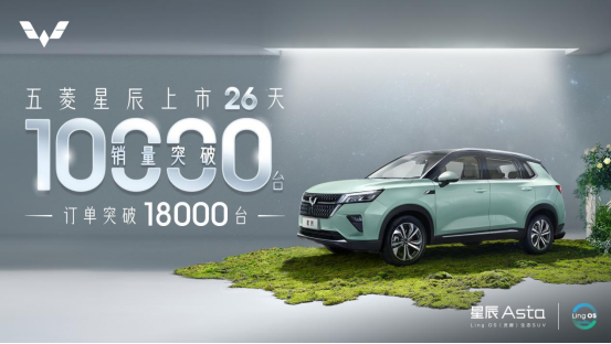 【2021年10月12日】 五菱全球银标首款战略级SUV五菱星辰,上市26天,销量突破10000台!截止目前,星辰订单已突破18000台,各区域终端交车火爆,尽展“10万内最能打SUV”不凡魅力。