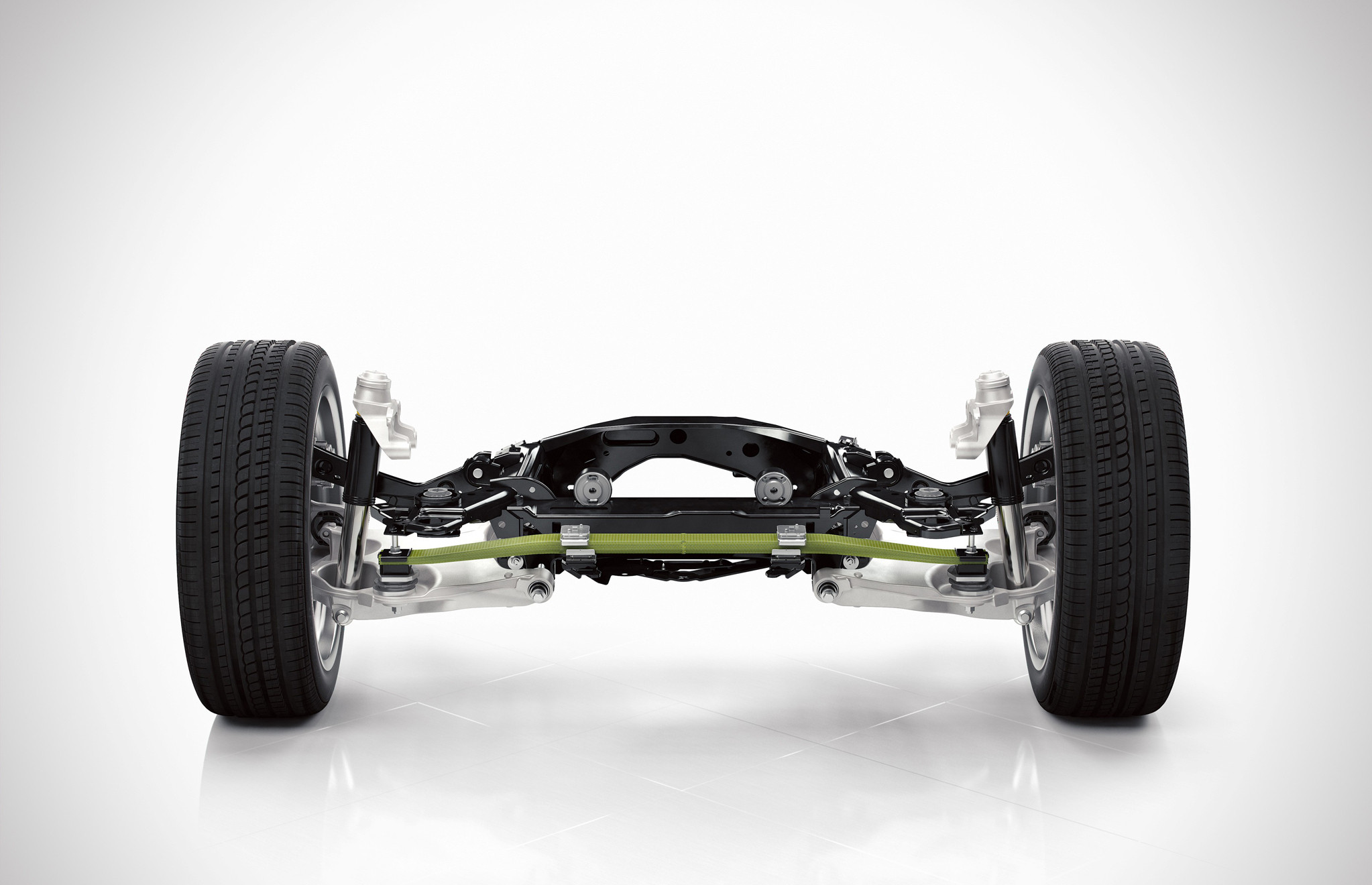 有意思的是,09的后悬挂同样采用了沃尔沃的叶片弹簧,看起来像扭力梁悬挂的结构,实际不是同一原理,叶片只充当弹簧,两边独立工作,产生的弯矩互不影响,并且依旧保留横向稳定杆。
