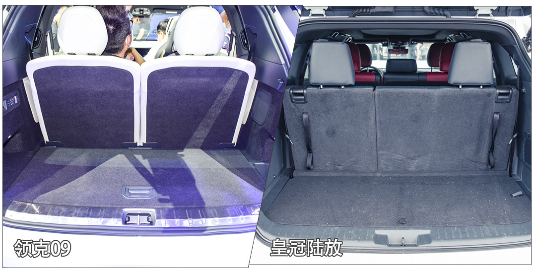 09最大的问题还是第二排地板凸起明显,进出第三排时都不方便,而且第三排由于侧窗较小,导致视野不够通透,这些都是不少豪华车架构的“通病”,它们不会把便利性放在第一位,当然尾箱装载空间还是09大一些。
