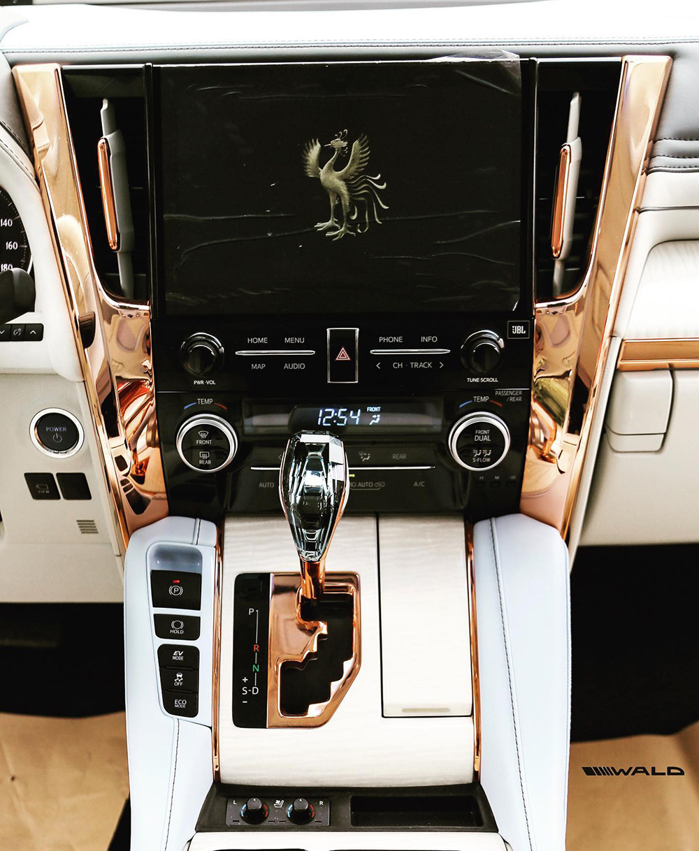 此次对丰田埃尔法下手,似乎是为了弥补当初的遗憾,为此Wald对丰田埃尔法的内外设计做出了极大的变动,用料顶级,细节做工十分讲究。把丰田世纪部分元素融入了进去,其豪华程度十分符合“日本天皇座驾”该有的水准。