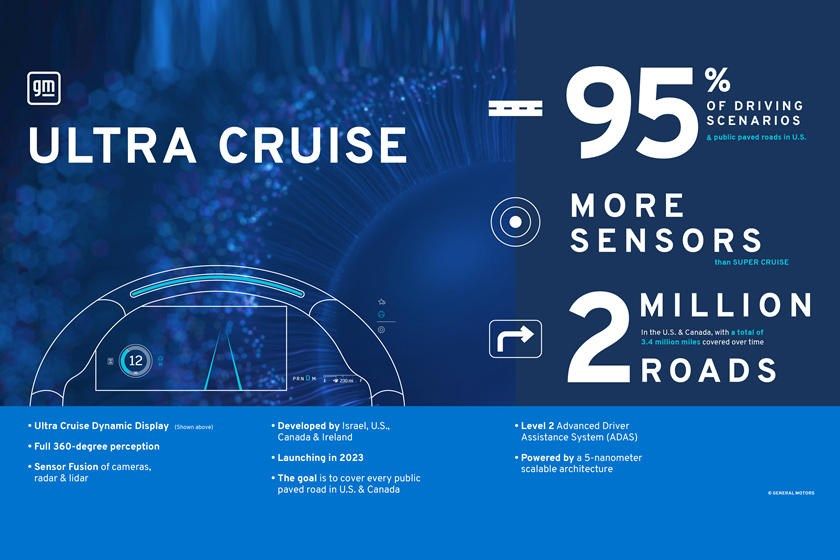 日前,教授据相关渠道获悉,通用集团即将发布最新的自动驾驶辅助系统Ultra Cruise(超级智能驾驶系统),未来将替代号称能实现L3级别自动驾驶辅助系统的Super Cruise,预计最快将在2023年首先搭载在凯迪拉克的车型上。
