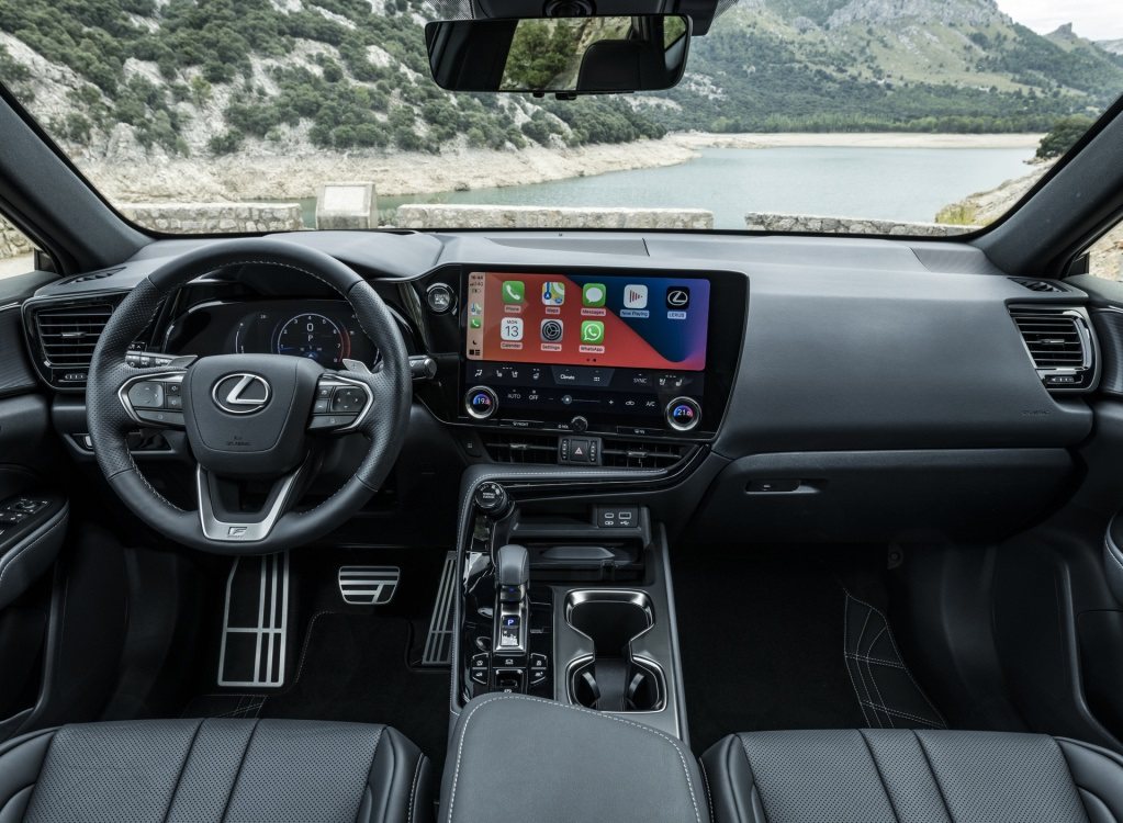 雷克萨斯全新一代NX的内饰也得到了全面升级,配备有全新三辐式方向盘、新造型的换挡杆以及偏向主驾驶的14英寸触摸式中控屏,后者相比现款依靠反人类的触控板交互设定,可谓有着极大的提升。不过象征着豪华与高级的中控台时钟被取消了,难免有些可惜。