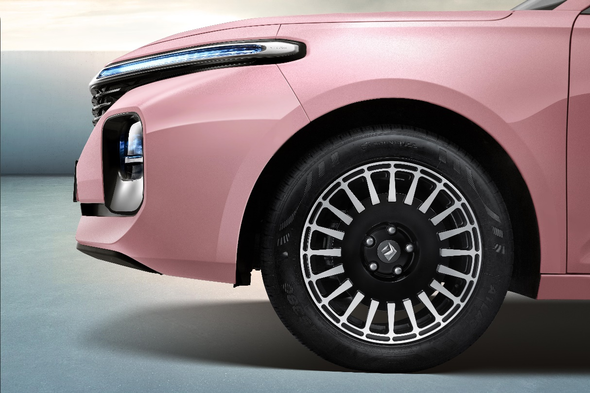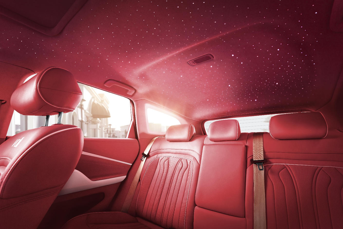 座椅上,新车采用豪华品牌的座椅版型设计,搭配高品质仿皮材质,不仅细腻耐用,而且颇具高级感。方向盘则使用粉色纤皮包裹,点缀以镀铬饰件,握感舒适,充满少女粉色情调。值得一提的是,新车还配备了同级别车型少见的可调色流星星空顶,高品质翻毛皮材质触感柔软细腻,加之可变色星空饰灯镶嵌其上,带来奇妙的视觉享受。此外,新车装备的轻量化星芒条幅轮毂,由铝合金旋压铸造而成,为整车营造出运动、精致的氛围。