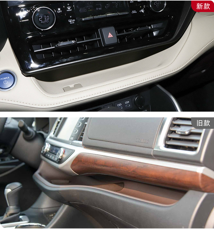 相信不少小伙伴对老款汉兰达上的贯穿式储物槽都难以忘怀,在新款上也得已延续,在中控台中间层和副驾驶手套箱上方都腾出了较为可观的储物空间,全车的收纳空间也非常的丰富,绝对不输于老款车型。