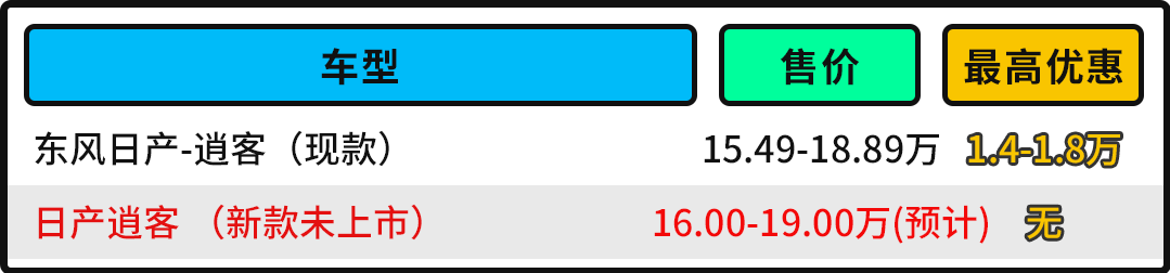 全新一代日产逍客预计将在今年内正式上市,由于更换更加节能的轻混动力系统,买买君预计新车售价方面,全新一代日产逍客售价方面将比老款车型售高些许。