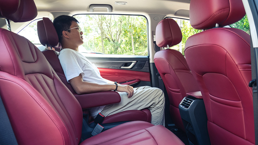 这就意味着第二排的乘客可以获得两张独立的座椅、独立的扶手,不仅可以让二排乘客坐得更舒服,还能为第三排乘客留出一个中央通道,让进出第三排变得更加方便。