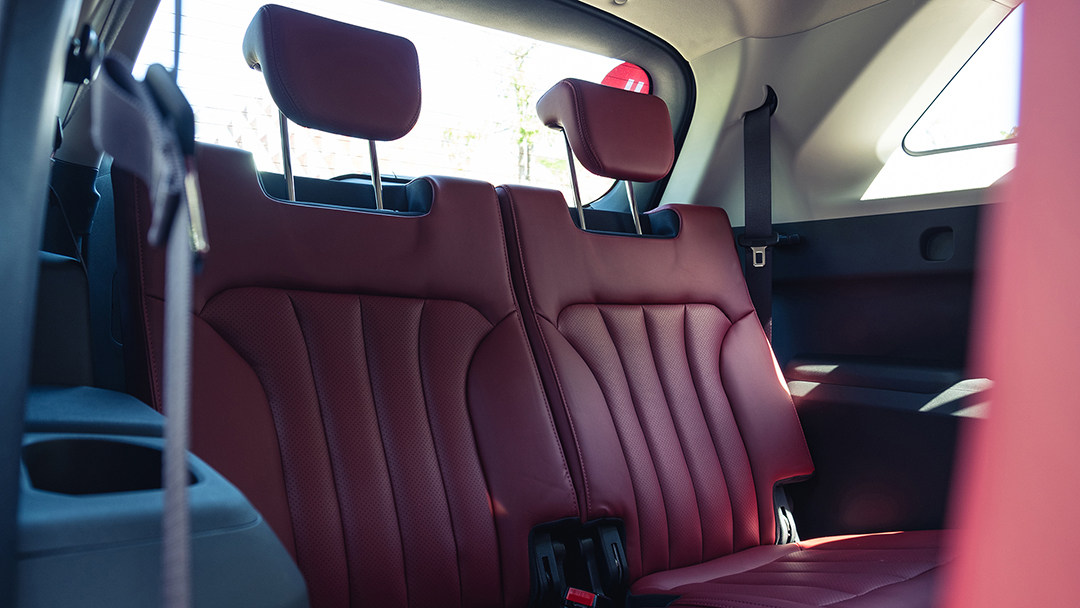 毫无疑问,新580的第三排座椅和所有同级三排座SUV一样,都只能用来应急。座垫较矮、较短导致第三排乘客需要采用一种不太舒服的坐姿;不过尚算合适的腿部空间也让乘客的双腿不至于太过蜷曲,稍长时间乘坐也不至感到疲劳。
