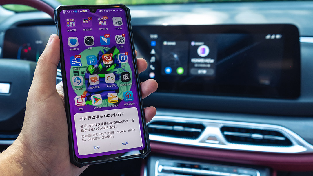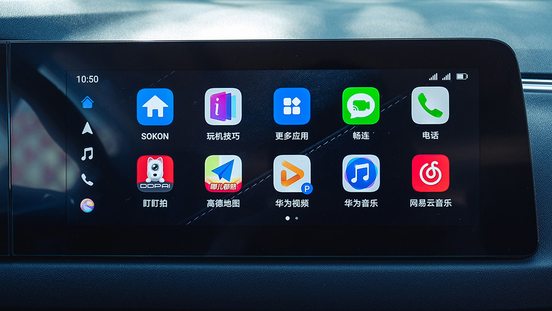12.3英寸智能车机的内置功能并无特别之处,基本上自主品牌车型身上能找到的主流娱乐功能大都有提供,但比较意外的是提供了华为HiCar互联系统,对于教授这个华为手机用户来说十分友好。