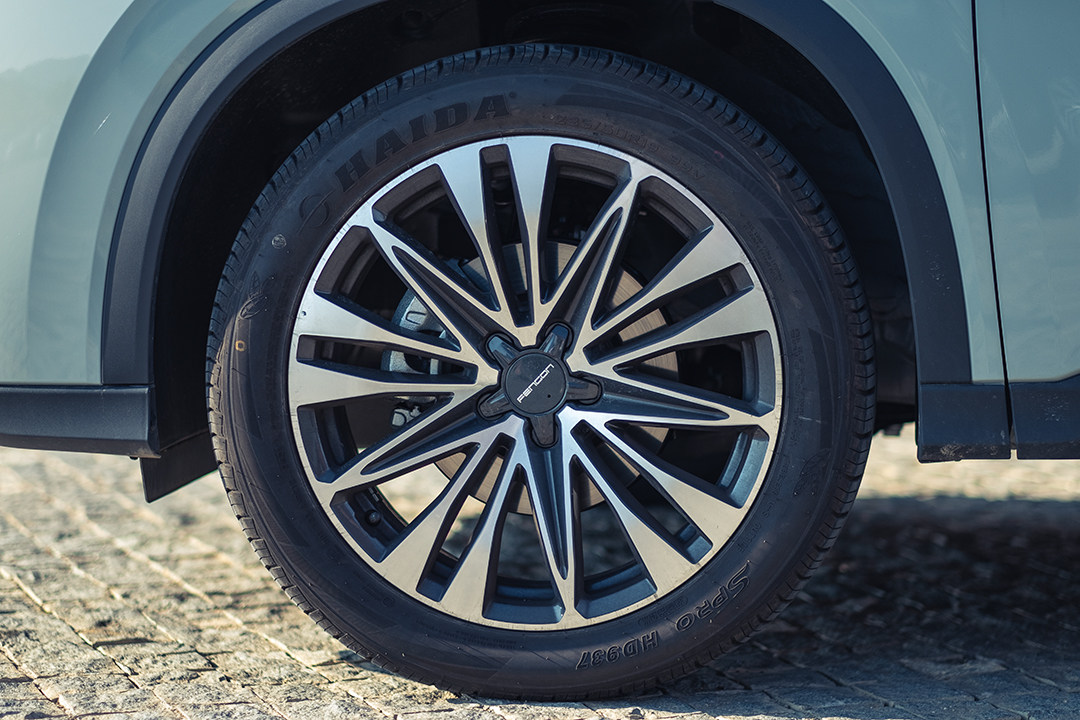 19英寸的大轮毂视觉效果一流,而大家也不必担心大尺寸轮毂会带来换胎成本较高的问题,因为这一次在新580试驾车身上配备的轮胎是海大轮胎,教授查到的市场售价似乎不足400元/条。
