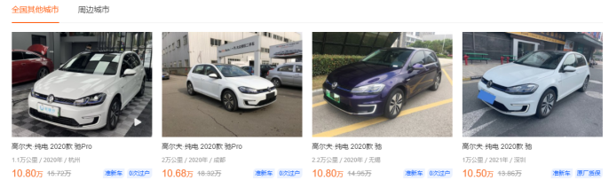 当然,给出这样的配置还让消费者原价购买那是没啥可能的,所以能看到进口e-Golf当年有近10万的优惠幅度,而国产版高尔夫·纯电亦有着3-4万的幅度。另外很多只行驶了1万公里的高尔夫·纯电,二手价也仅是10万元出头。