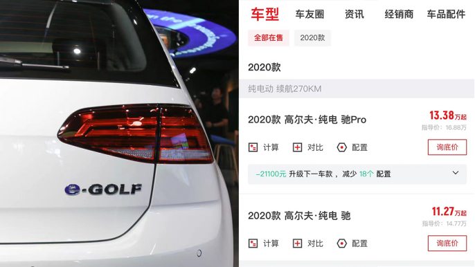 而在国产之前,2018款e-Golf(进口版)的指导价甚至高达24.08万元...但续航也是270km。