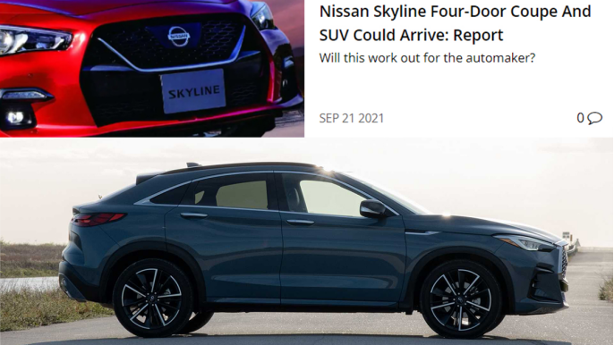 接着更重要的是,就在上个月就传出另一个“疯狂理论”:虽然日产证实了不会放弃Skyline系列(英菲尼迪称Q50L)的开发,但在未来Skyline系列亦有可能会以SUV的形式出现。